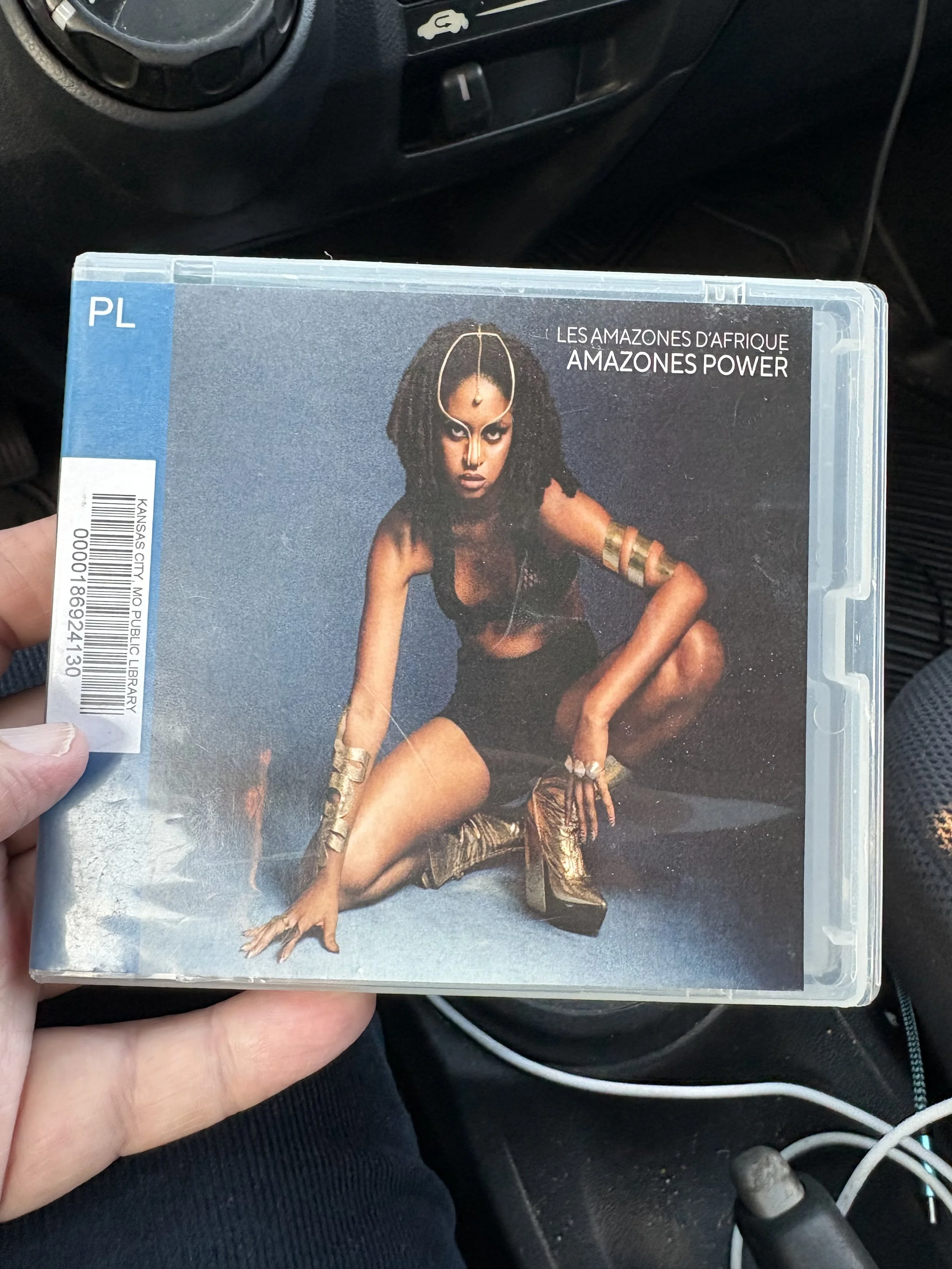I checked out Les Amazones d’Afrique Amazones Power cd from the KC Plaza library, on the Real World label. It’s pumped up afro-pop with hip hop and pop elements, definitely feel the dance floor moving while I drive my 2013 Honda Fit to work. The band is more of a fluid supergroup with a super producer, Dr L, and advocates for global women’s health and social justice. It’s warrior music for the dance floor, groove first, ideas second. It’s on Bandcamp and whatnot but I wouldn’t have found it without the curation of a music librarian, leaving easter eggs on the shelves for all of us.
